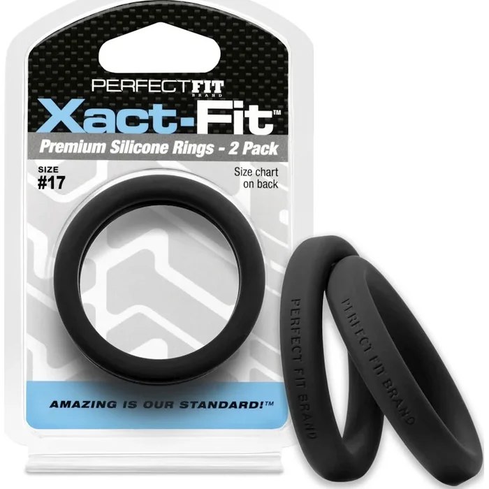 Perfect Fit Xact-Fit Silicone Cock Rings 2 Pk – Black Size 17