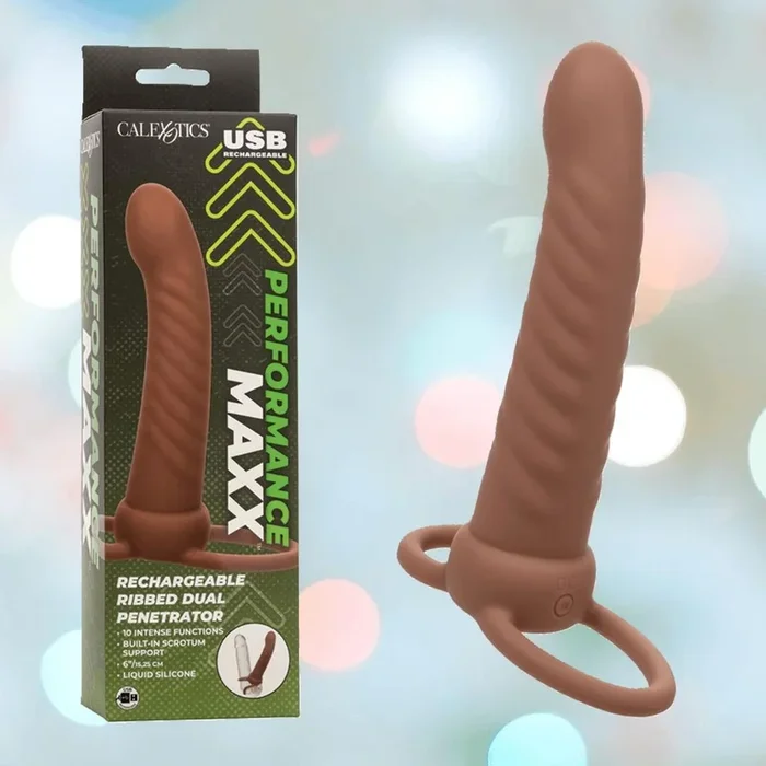 Performance Maxx Rechargeable Ribbed Dual Penetrator – Brown