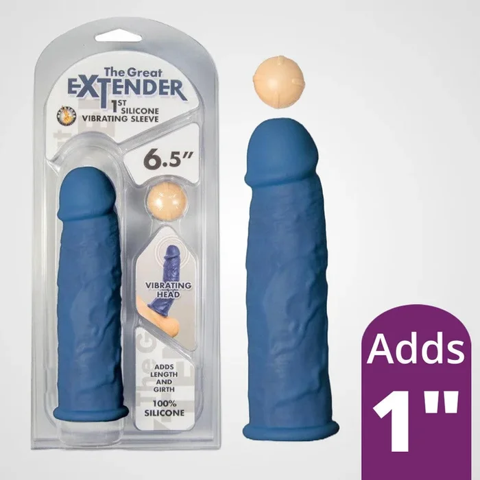 The Great Extender 1st Vibrating Penis Sleeve 6.5″ – Blue