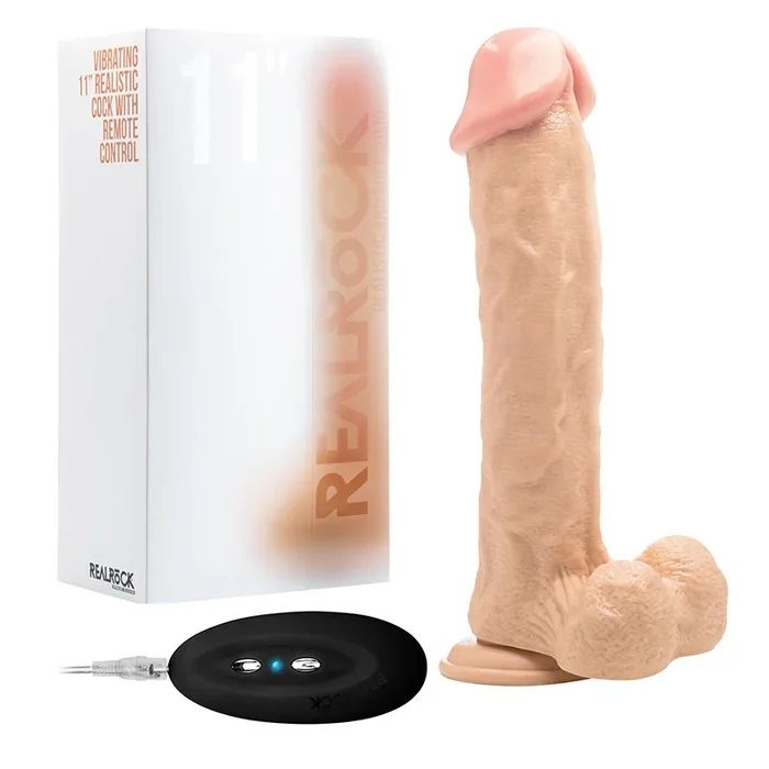 RealRock Vibrating Realistic Cock – 11in – With Scrotum – Skin