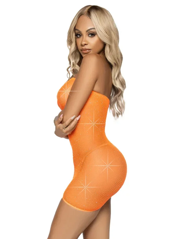 Rhinestone Fishnet Convertible Tube Dress – One Size – Orange