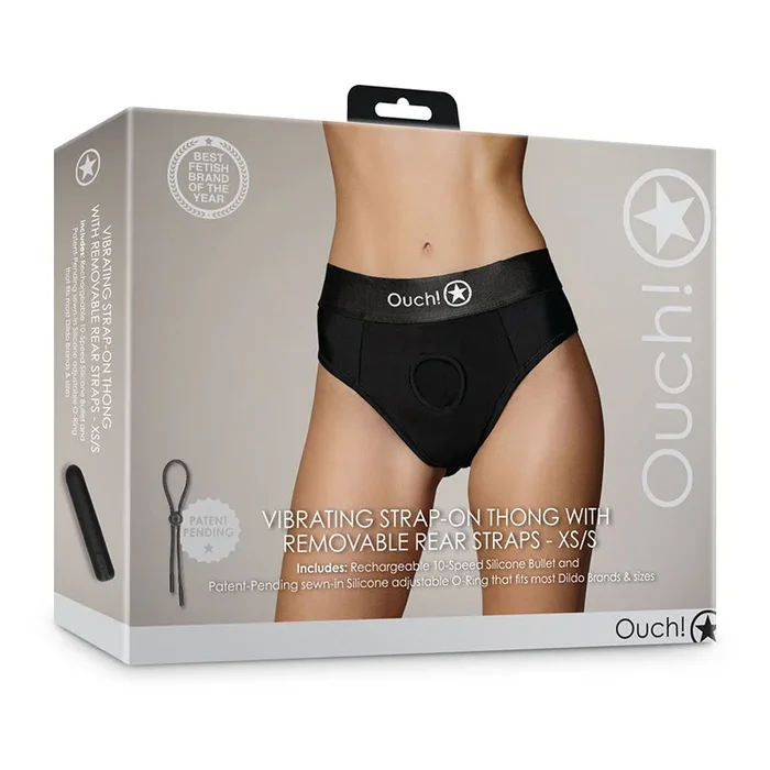 Shots Ouch! Vibrating Strap-on Thong with Removable Rear Straps Black XS/S