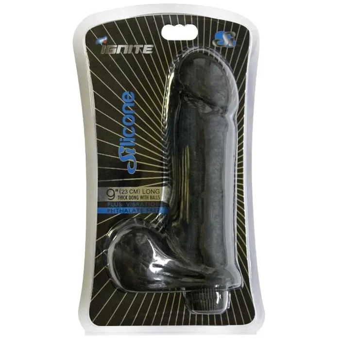 SI 9in Thick Vibrating Silicone Dong w/Balls Black