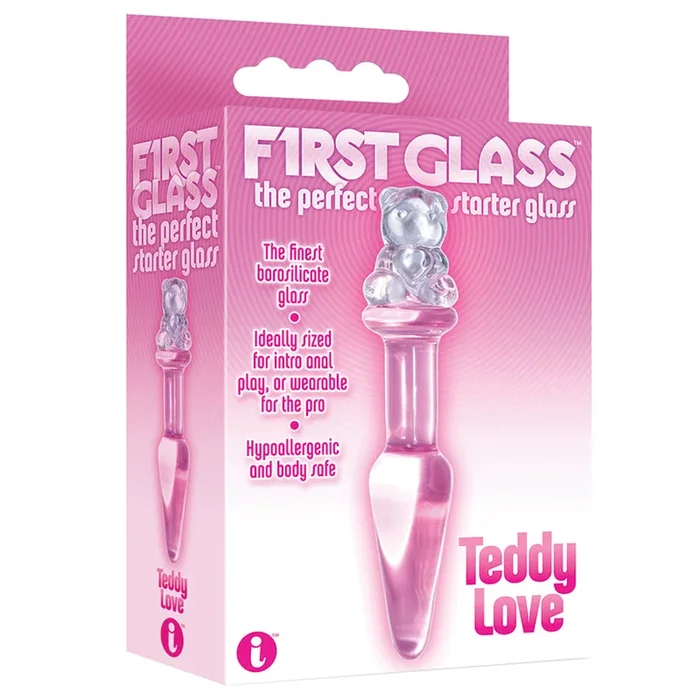 The 9’s First Glass Teddy Love Glass Butt Plug-Pink