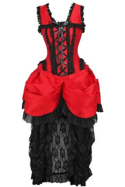 Top Drawer Steel Boned Red/Black Lace Victorian Bustle Corset Dress