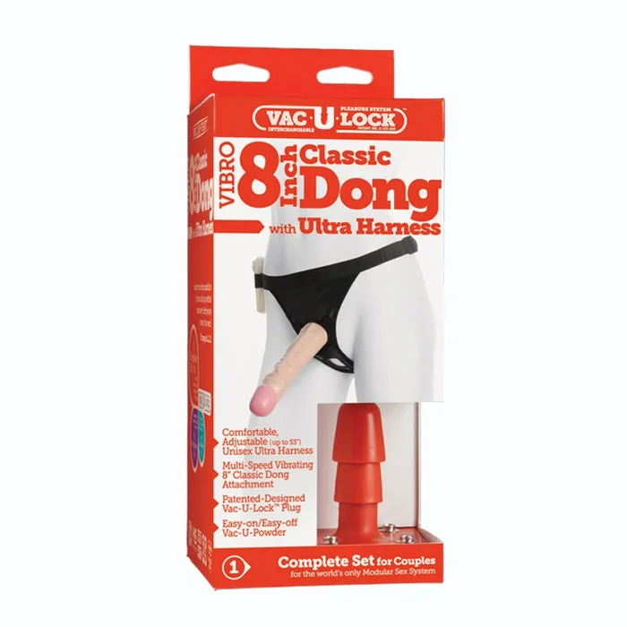 Vac-U-Lock – 8 Inch Realistic Cock (Vibro) – With Ultra Harness White