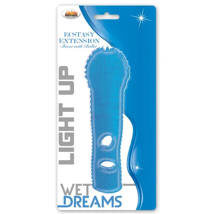 Wet Dreams Ecstasy Ext Light Up Slve w/Bullet-Blue