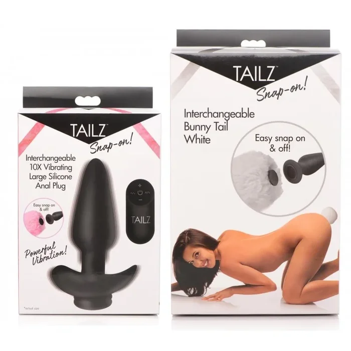 Large Vibrating Anal Plug with Interchangeable Bunny Tail – White
