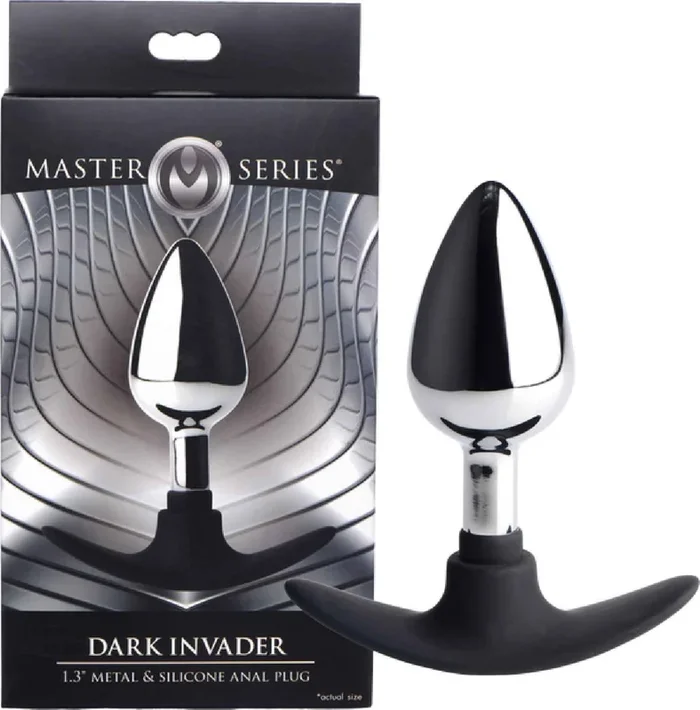 Master Series – Dark Invader Metal And Silicone Anal Plug – Medium – Silver/Black