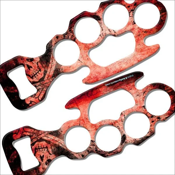 Kolorcoat™ Knuckle Buster Bottle Opener – Grunge Skulls – Red