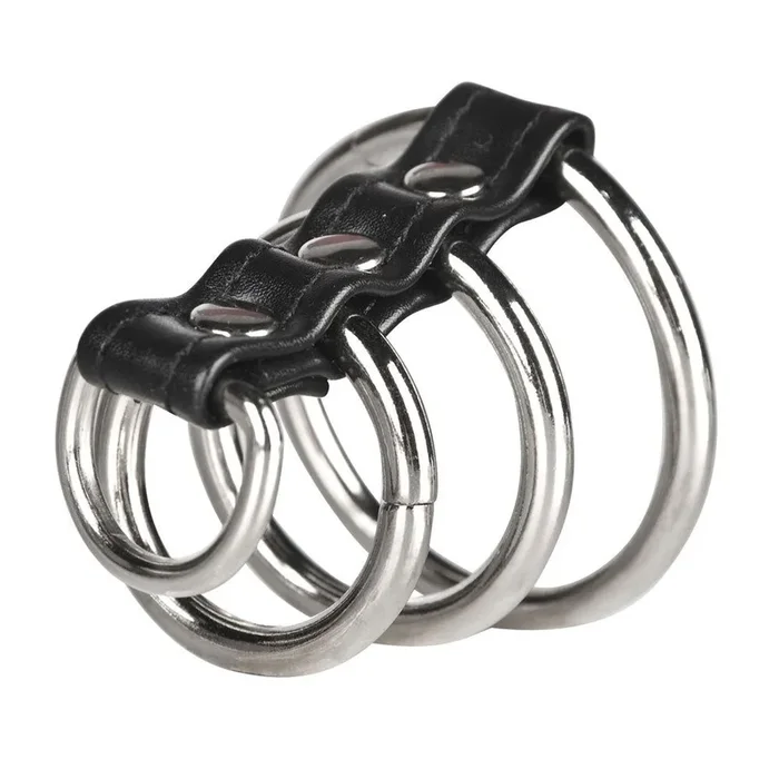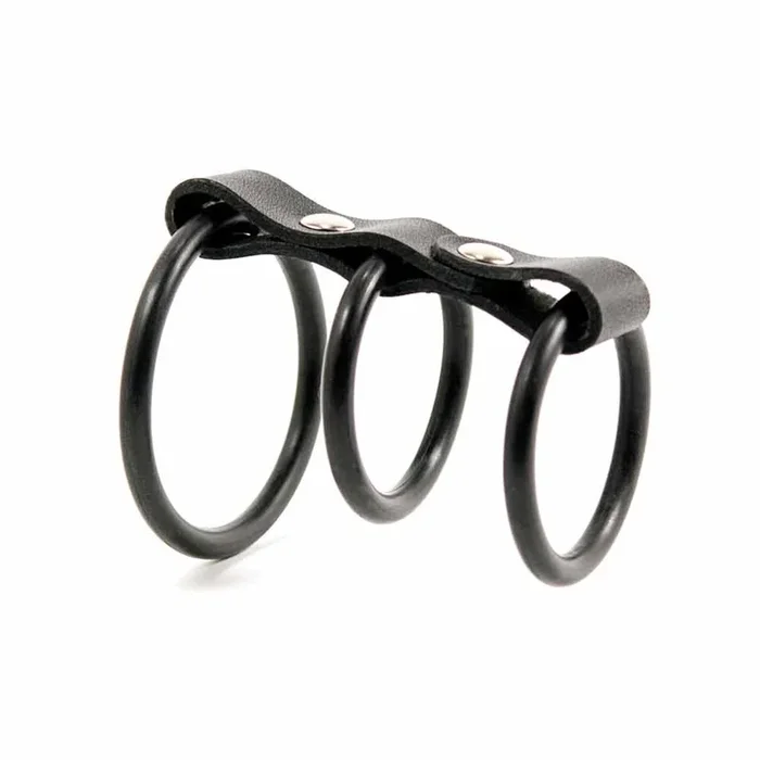 3 Ring Gates of Hell Leather and Silicone Cock Ring