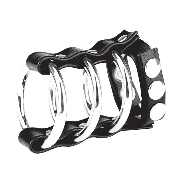 Triple Metal Cock Ring with Adjustable Snap Ball Strap