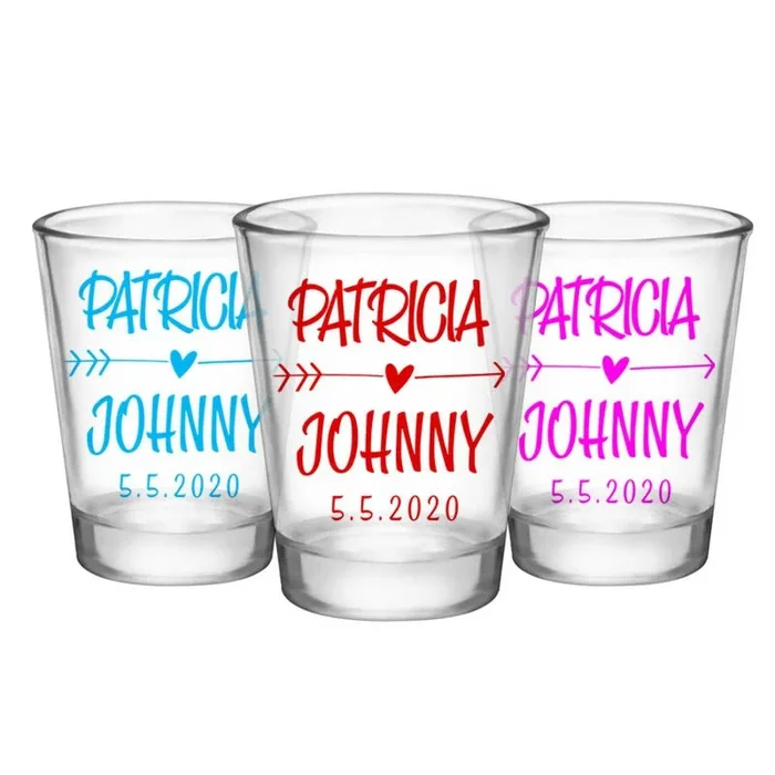 CUSTOMIZABLE – 1.75oz Clear Wedding Shot Glass – Heart Arrow