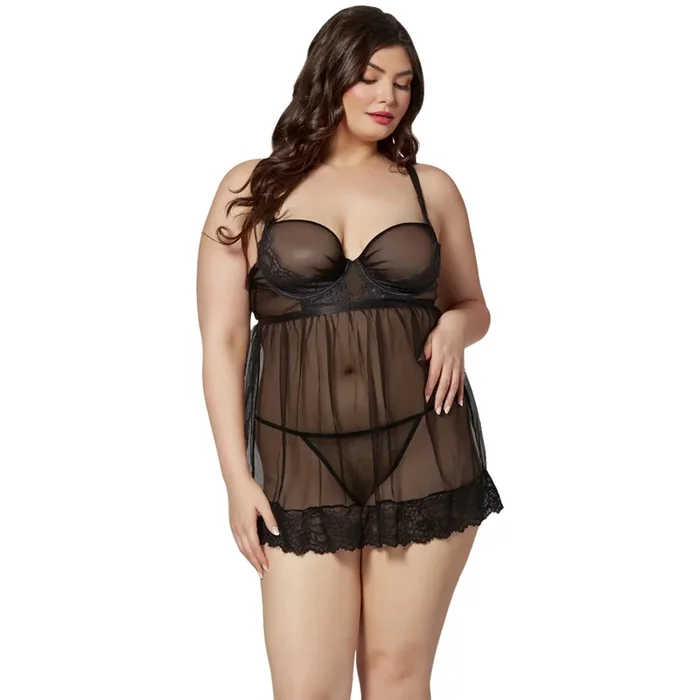 Seven ‘til Midnight Black Two Piece Tulle Babydoll And G-string Plus Size