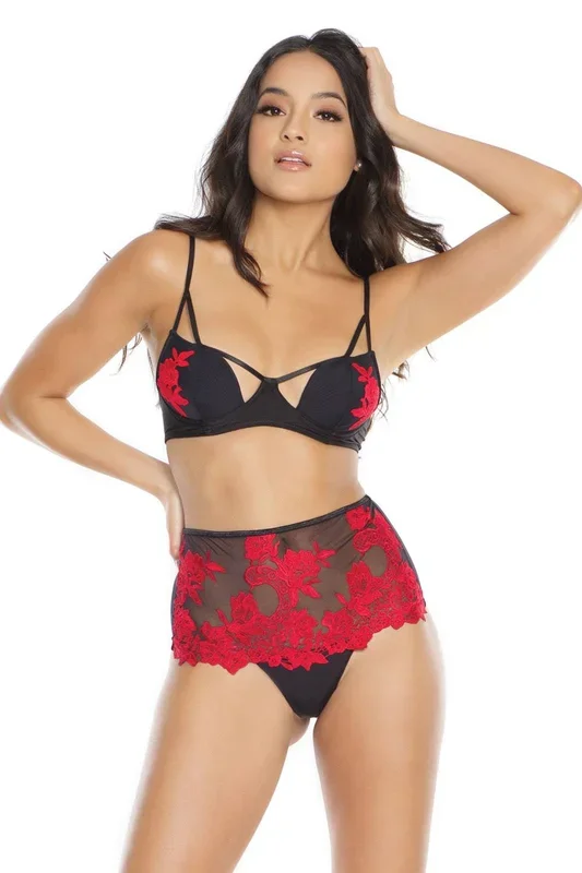 Coquette – 3869 – Embroidered Bra & Thong Set – Black/Red