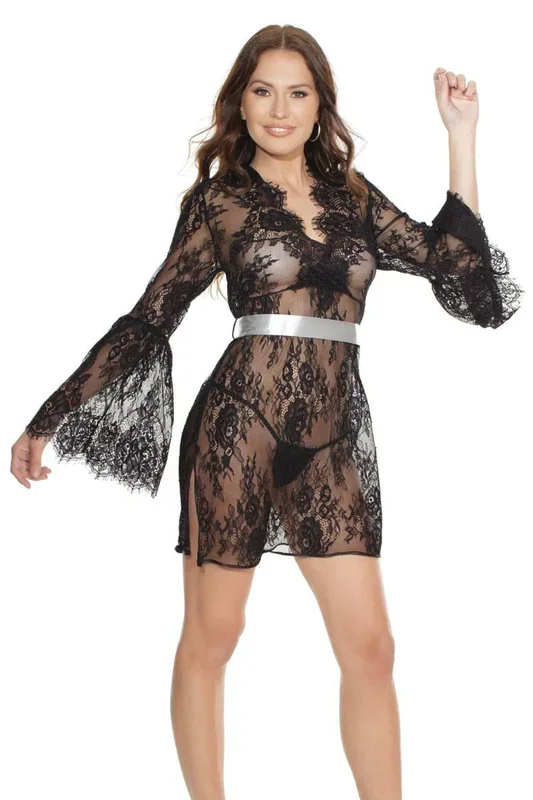 Coquette – 3875 – Satin Robe – Black – OS