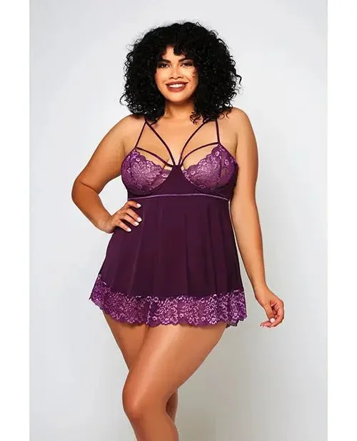 Cross Dye Lace & Microfiber Babydoll Lingerie with G-String – Purple Lingerie
