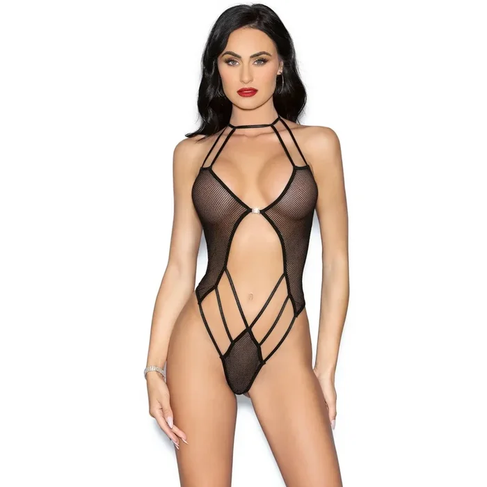 Josephine High Leg Teddy with Removable Fishnet Collared Harness
