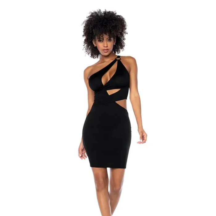 Mapale Black Asymmetrical Cut-Out Mini Dress – Sheer Mesh Back & Ring Detail