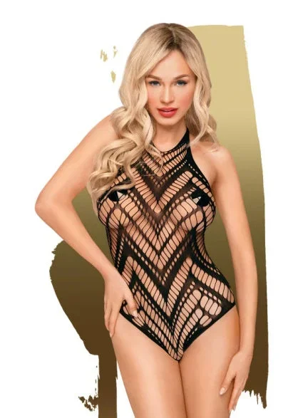 Penthouse Forbidden Fruit Plunged Bodystocking with Open Crotch – Black O/S