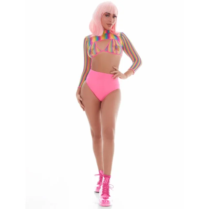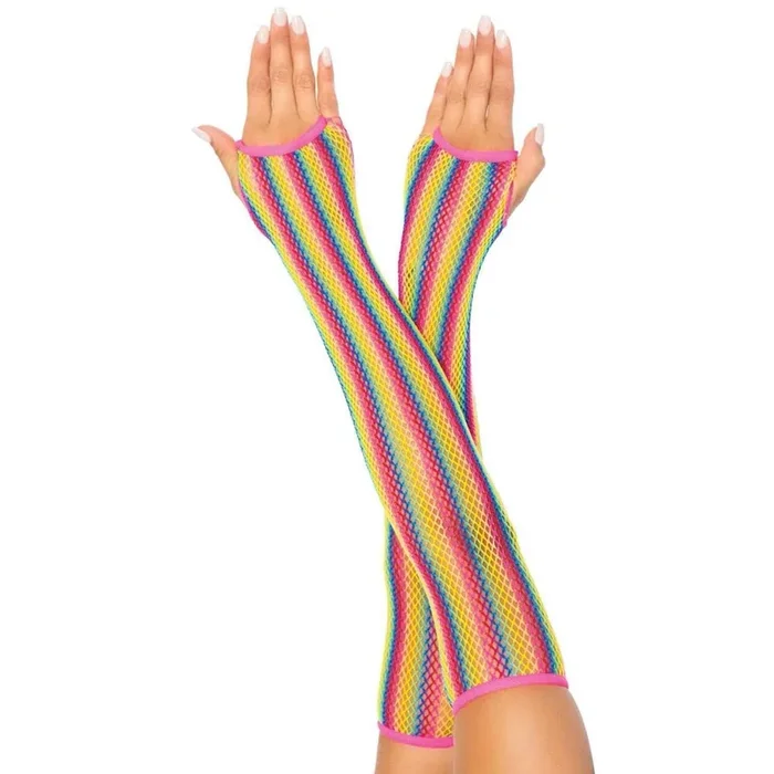 Rainbow Net Fingerless Arm Warmer Gloves