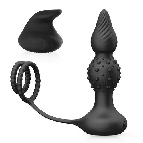 Titan – 9 Vibrations Simulated Penis Texture Testicle & Penis Dual Chastity Ring Couples Sex Toy