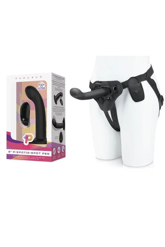 Electric Eel – Pegasus – 6″ Vibrating P-Spot / G-Spot Peg With Harness – Black