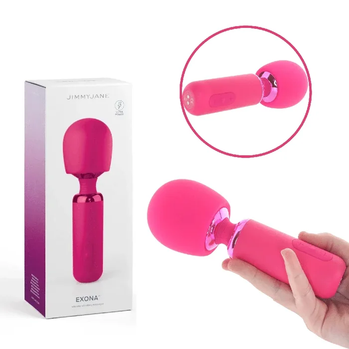 JimmyJane Exona Body Silicone Vibrating Massager Discreet Mini Wand Vibrator – Pink
