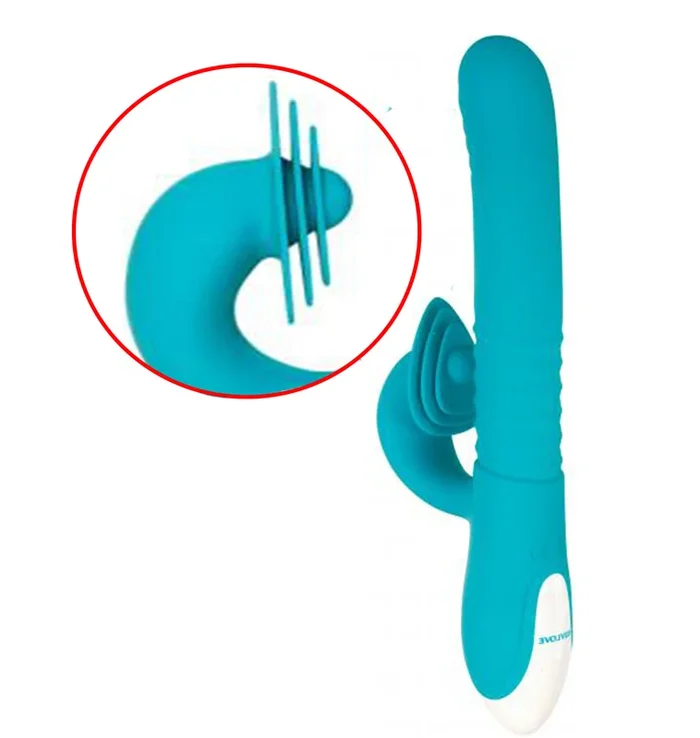 Show Stopper Thrusting Rabbit Silicone Vibrator With Clit Stimulator Teal