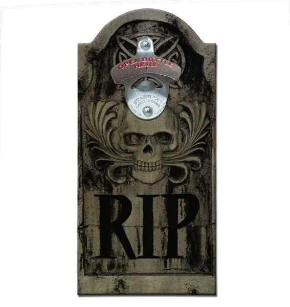 Gravestone Wooden Bottle Opener with Magnetic Cap Catcher